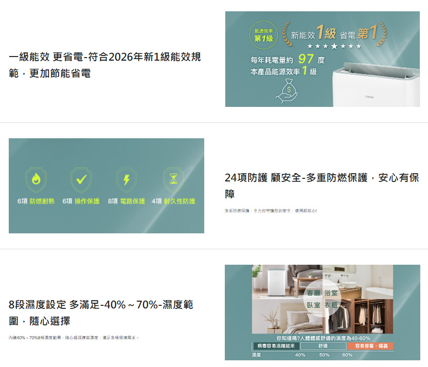 濕度設定:50%-55%-60%-65%-70%-Co-40%-45%(8段)